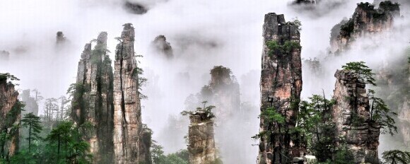 有時,山下細雨霏霏,山上卻晴空萬裡(lǐ) ;有時,山上雲遮霧罩,山下卻陽光燦爛。美國(guó)好(hǎo)萊塢大片《阿凡達》中的懸浮山,吸引了全世界觀衆的眼球,其原型就是雲海中的武陵源石英砂岩峰林。晴朗的清晨,一輪朝陽在五彩雲霞簇擁下,從奇山異峰中冉冉升起(qǐ) ;