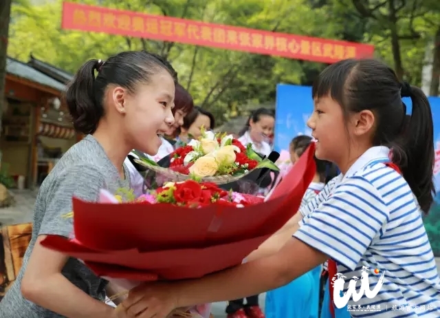 9月12日,女子69公斤級舉重冠軍向(xiàng)豔梅、男子56公斤級舉重冠軍龍清泉和女子體操團體季軍商春松,以及昔日曾獲得奧運冠軍的熊倪、龔智超、楊霞歡聚在世界首批自然遺産地張家界核心景區武陵源,共同開(kāi)啓“奧運之旅",并被張家界市武陵源區政府授予“榮譽市民”稱号。
