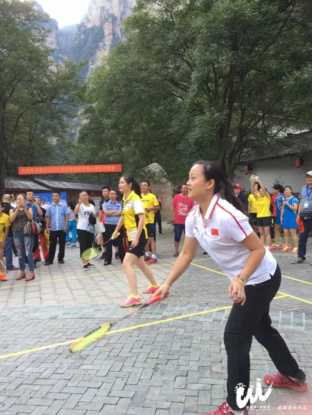 奧運冠軍在賀龍公園瞻仰了新中國(guó)第一任體委主任賀龍元帥銅像,參觀了天子山、袁家界、寶峰湖等精華旅遊景點,并在水繞四門張家界世界地質公園博物館廣場即興進(jìn)行了體操、舉重、羽毛球等體育項目的精彩表演,與海内外遊客熱情互動。