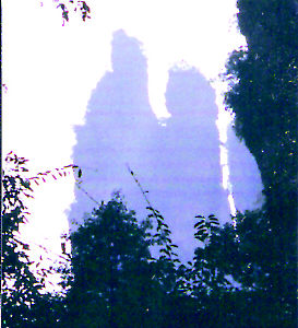位于山巒頂部一石峰之巅,好(hǎo)似緊相依偎的兩(liǎng)顆人頭浮雕,五官俱全,一個笑意綿綿,一個表情沉穩,二者像是裹在一個大風衣裡(lǐ),把萬千情意彼此傳送。這(zhè)對(duì)“夫妻”已在此屹立了萬億年之久,鬥轉星移,風吹雨打,忠貞不移。