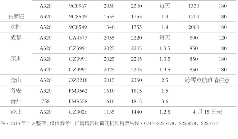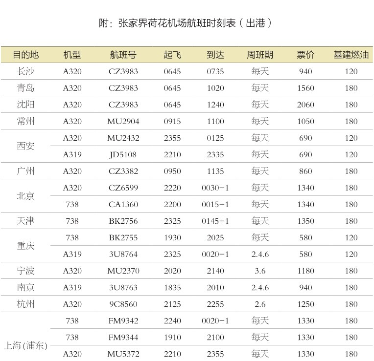 附:張家界荷花機場航班時刻表(具體實時航班以網上查詢爲準!)